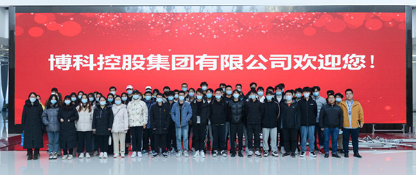 2020年12月30日上午,山東政法學院商學院老師及 80余名準畢業生前來博科集團總部參觀交流,博科集團人力資源副總經理張程、經理宮惠等對來訪學生進行了熱情接待。