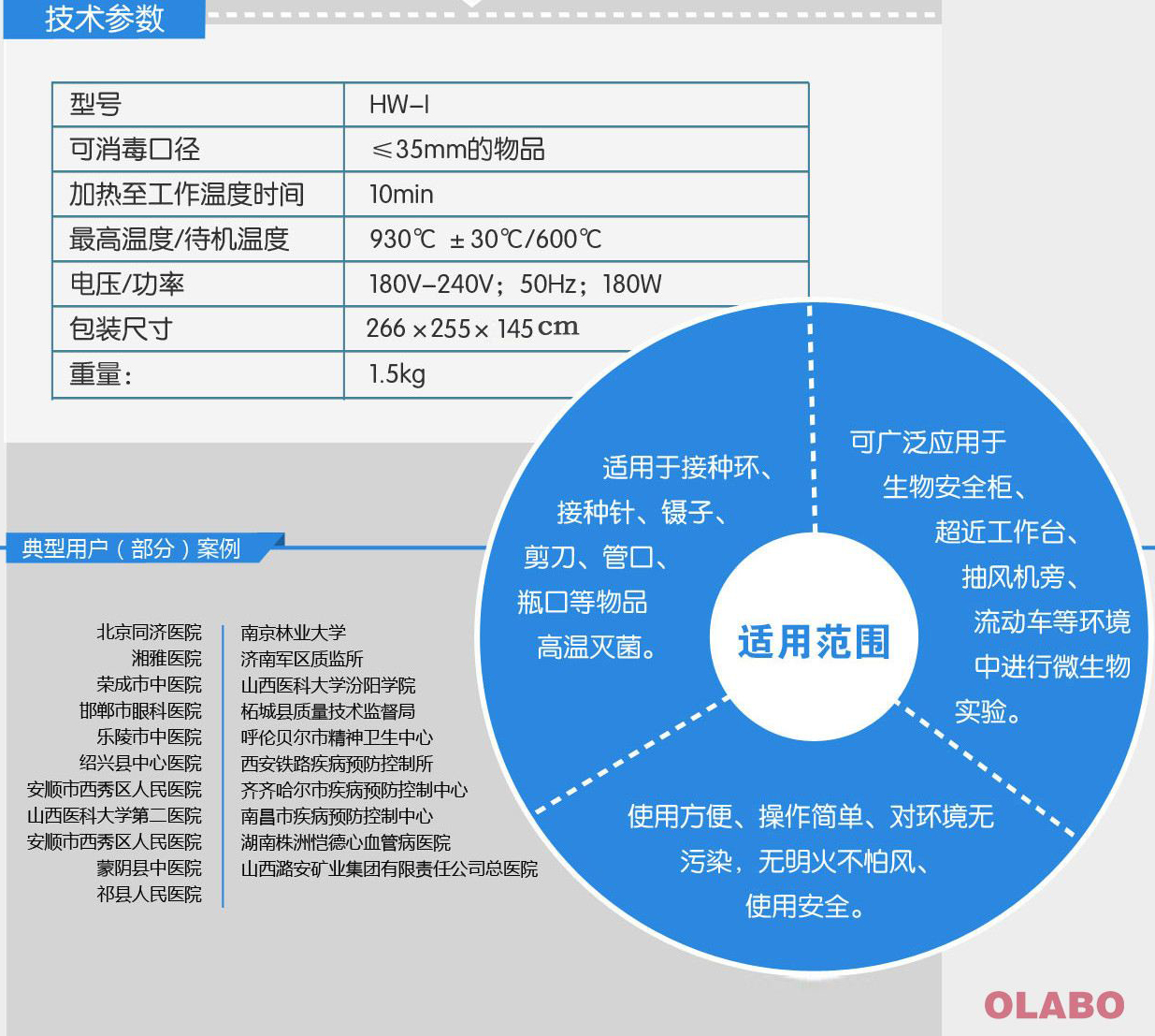 最高溫度930℃±30℃,接種環(huán)2秒滅菌,有效減少使用者工作強(qiáng)度,而市場同產(chǎn)品溫度只有800℃ 右,滅菌需7-8秒;